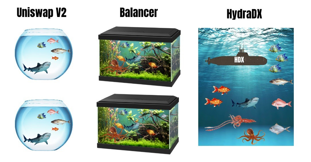 HDX becomes a liquidity reserve asset around which the participants form a spontaneously emergent and autonomous organization. AMMs (with an exception) have been largely relying on "governance tokens" which we see as a very weak proposition given that:
