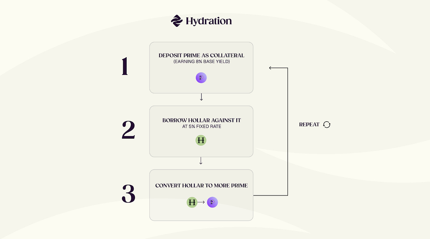 Each loop captures the 3% spread between PRIME’s yield and HOLLAR’s borrow rate. With modest leverage, users can push real yields into 15-20%+ territory without any token incentives. Fixed rates, not floating. Certainty, not volatility.